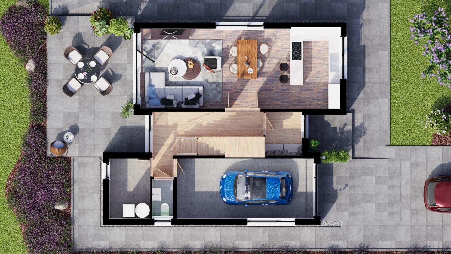 Dispozice projektu pamatuje i na volitelnou terasu a nebo stání pro druhý automobil.